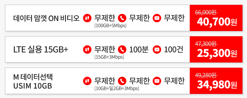 위의 3가지 요금제가 KT엠모바일에서 데이터 쉐어링을 신청할 수 있는 요금제이니 참고하셔서 어떤 요금제가 나에게 적합한지 생각해보시면 좋겠습니다.