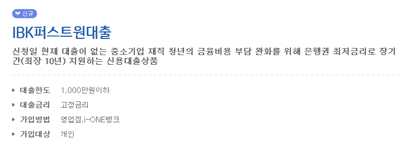 기업은행 중소기업 청년대출은 중소기업 재직청년의 금융비용 부담 완화를 위해 은행권 초저금리로 장기간 지원하는 신용대출 상품입니다.