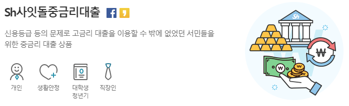 수협은행에서는 신용등급 등의 문제로 고금리 대출을 이용할 수 밖에 없었던 서민들을 위한 정부지원 중금리대출 상품을 판매하고 있습니다.