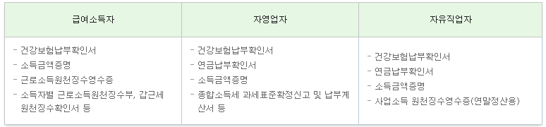 - 소득증빙이 가능한 프리랜서 및 연금소득자