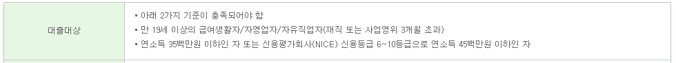 무보증 신용대출 상품으로 소득이 적거나 신용등급이 낮아도 정부에서 정한 요건을 충족하면 신청할 수 있다는 것이 특징입니다.