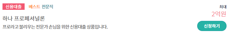 하나은행에서는 전문직 자격증을 보유하고 있으면서 현업에 종사중인 급여소득자 또는 사업소득자를 대상으로 전문직 신용대출 상품을 판매하고 있습니다.
