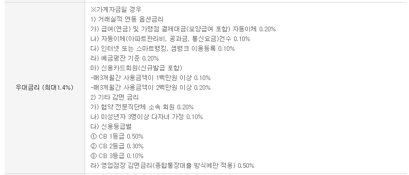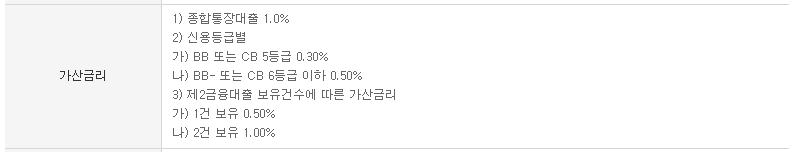 부산은행 전문직대출의 기준금리와 가산금리, 우대금리는 위와 같습니다.