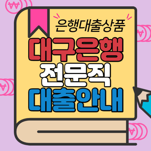오늘은 대구은행 전문직대출의 신청자격, 대출한도, 대출금리, 상환기간, 필요서류에 대해 이야기해보도록 하겠습니다.