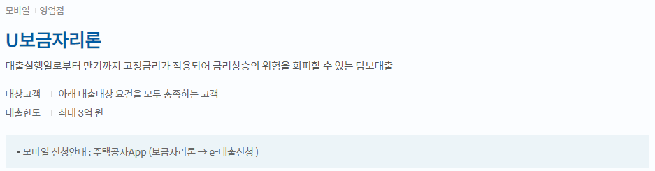 신한은행에서는 서민계층의 내집마련을 위해 한국주택금융공사에서 시행하는 보금자리론 대출상품을 판매하고 있습니다.