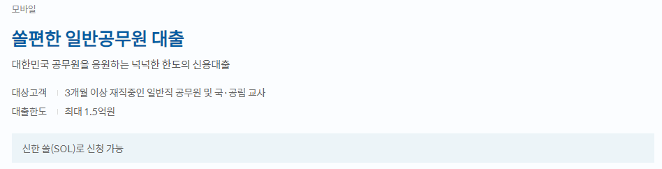 신한은행에서는 대한민국 공무원의 필요자금 및 생활안정자금을 지원하기 위한 신용대출 상품을 판매하고 있습니다.