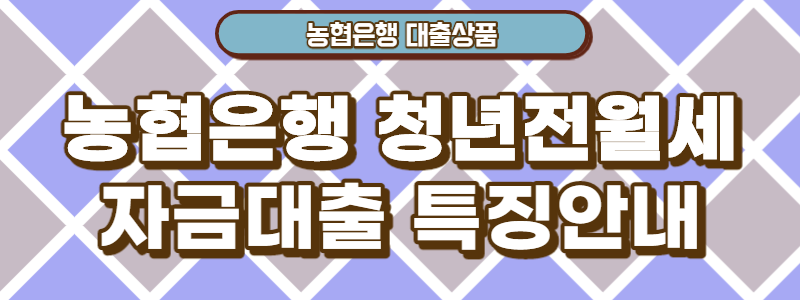 이번 시간에는 농협은행 청년 전월세대출의 특징안내, 신청자격, 대출한도, 상환기간, 대출금리, 필요서류에 대해 알려드리도록 하겠습니다.