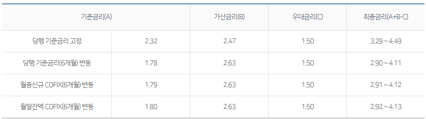 기준금리와 가산금리, 그리고 우대금리를 더해 연간 최저 2.90%의 금리가 적용될 수 있으니 참고바랍니다.