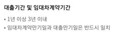 다만 임대차계약 만기일과 대출만기일은 반드시 일치해야하며, 임대차계약 연장시 대출 또한 연장신청하여 이용할 수 있습니다.
