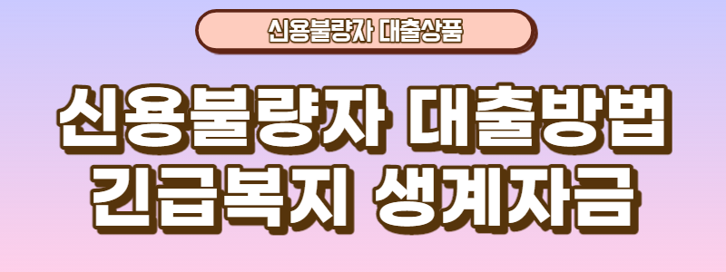 신용불량자가 된 이유가 채무를 갚지못해 발생한 것이기 때문에 대출을 알아보기 보단 갚지않아도 되는 긴급복지 생계자금 지원이 가능한지 알아보시길 바랍니다.