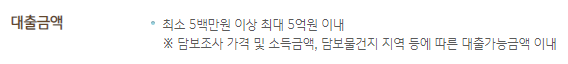 국민은행 아파트담보대출의 한도는 최소 500만원 이상 최대 5억원 이내로 책정됩니다.