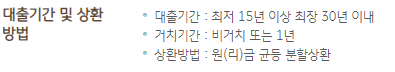 거치기간은 비거치로 하거나 1년 거치 이후 원리금균등분할 상환의 방식으로 대출금 상환이 진행됩니다.