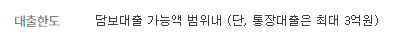 단 통장대출의 경우 최대 3억원의 한도범위 내에서 대출 신청이 가능합니다.