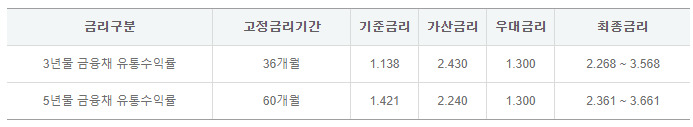 최저 연 2.268%의 금리부터 적용받을 수 있지만 신청시기 및 신용등급 등에 따라 개인별 차등 적용될 수 있으니 자세한 금리는 하나은행 영업점 또는 고객센터로 문의하시길 바랍니다.