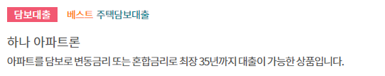 1. 하나은행 아파트 담보대출 특징안내