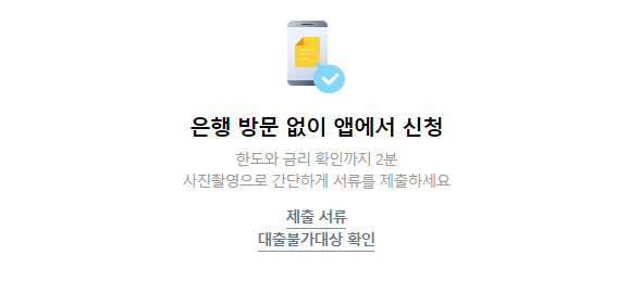 은행방문없이 케이뱅크 앱에서 한도와 금리까지 한번에 확인할 수 있으며, 사진촬영으로 간단하게 서류를 제출할 수 있습니다.