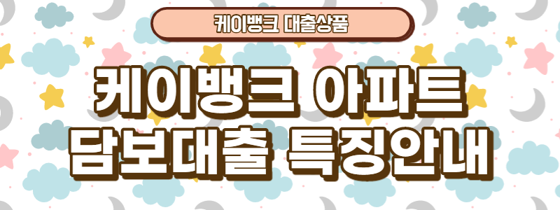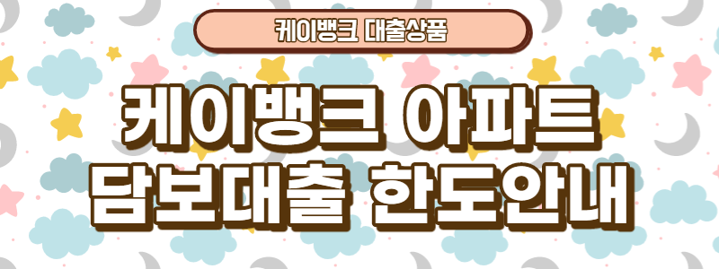 케이뱅크에서는 본인 소유의 아파트를 담보로 제공하고 필요한 자금을 대출하는 아파트 담보대출 상품을 판매하고 있습니다.
