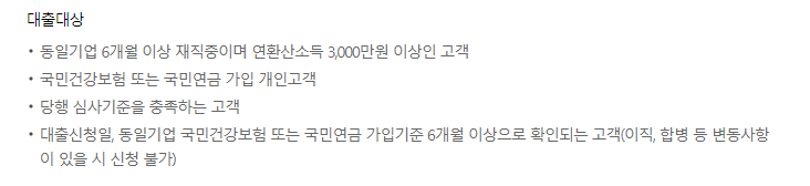 국민건강보험 또는 국민연금이 직장인 가입자로 등록되어 있어야 하며, 국민건강보험 납부보험료로 추정한 소득을 기준으로 신청가능여부를 결정합니다.