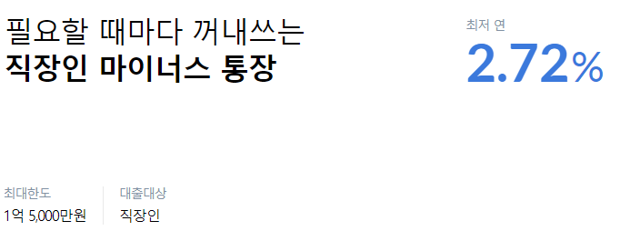 인터넷 은행인 케이뱅크는 성실히 근무하는 직장인을 대상으로 필요할 때마다 언제든지 사용할 수 있도록 지원하는 마이너스 통장대출 상품을 판매하고 있습니다.