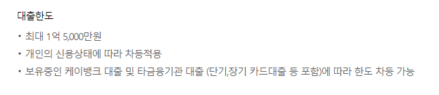 본인의 신용상태에 따라 한도는 차등적용되며, 보유중인 대출잔액만큼 차감후 한도가 책정됩니다.