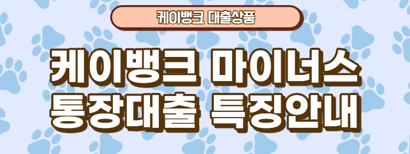이번 시간에는 케이뱅크 마이너스 통장대출의 특징안내, 신청자격, 대출한도, 상환기간, 대출금리, 필요서류 등에 대해 알려드리도록 하겠습니다.