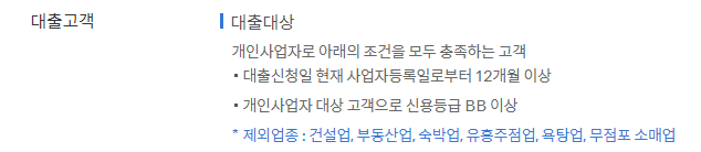 - 개인사업자 신용등급이 BB등급 이상일 것