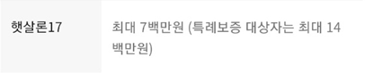 카카오뱅크에서는 최저신용자에게 1금융권 대출을 이용할 수 있게 정부에서 지원하는 햇살론17 대출상품을 판매하고 있습니다.