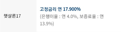 카카오뱅크 햇살론17은 단일 고정금리가 적용됩니다.