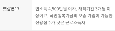 연소득 4500만원 이하이면서 재직기간이 3개월 이상이고, 국민행복기금의 보증 가입이 가능한 신용점수가 낮은 근로자가 신청할 수 있습니다.