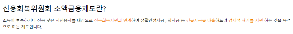 신용회복위원회 채무조정을 이용하여 채무를 상환중인 분에게 갑자기 급전이 필요하거나 긴급자금이 필요시 지원하는 대출 상품입니다.