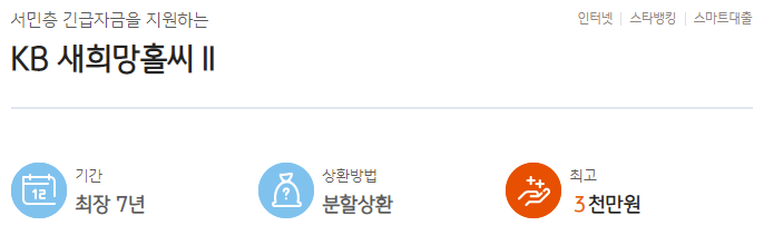 국민은행 새희망홀씨 대출은 서민계층의 긴급자금 및 필요자금을 지원하는 대표적인 정부지원 서민대출 상품입니다.