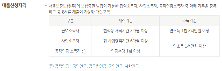 01. 급여소득자 : 연소득 1500만원 이상, 현직장 재직기간 3개월 이상