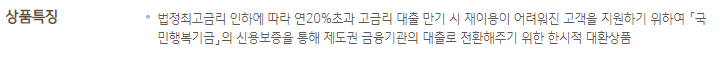 한시적으로 운영중이기 때문에 연 20% 이상의 고금리 대출을 이용하고 계신 분 중 신청자격에 해당하시는 분은 서둘러서 대환신청을 하시길 바랍니다.