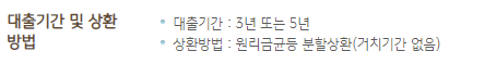 거치기간 설정이 불가하며, 원리금 균등분할 상환의 방식으로 대출금 상환이 진행됩니다.