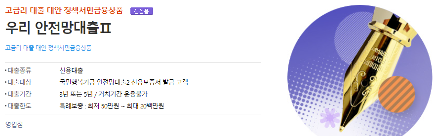 우리은행 안전망대출 특징안내
