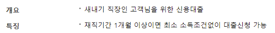 재직기간 1개월 이상이면 최소 소득조건없이 대출 신청이 가능한 것이 특징입니다.