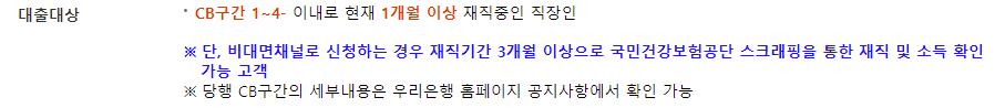 단 비대면 채널, 즉 스마트폰 앱 또는 온라인으로 대출을 신청하는 경우 재직기간 3개월 이상으로 국민건강보험공단 스크래핑을 통한 재직 및 소득 확인이 가능한 분이 신청할 수 있으니 참고 바랍니다.