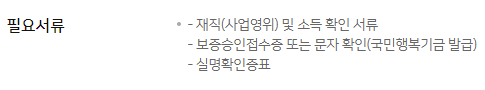 위의 조건을 충족하는 가운데 국민행복기금의 신용보증서가 발급되어야 하니 참고바랍니다.