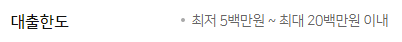 다만 실제한도는 대출을 신청하시는 분의 상환여력 및 대출조건 등에 따라 달라질 수 있으니 유의바랍니다.