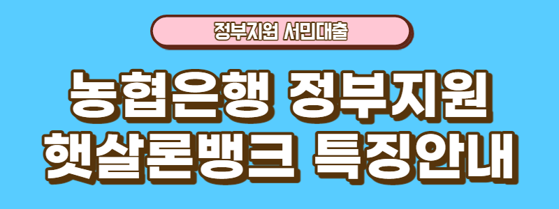 이번 시간에는 농협은행 햇살론뱅크의 특징안내, 신청자격, 대출한도, 상환기간, 대출금리, 필요서류 등에 대해 알려드리겠습니다.