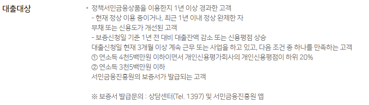 여기서 말하는 정책서민금융 상품은 새희망홀씨, 근로자 햇살론, 사업자 햇살론, 미소금융, 바꿔드림론, 햇살론유스, 햇살론15 등이니 참고 바랍니다.