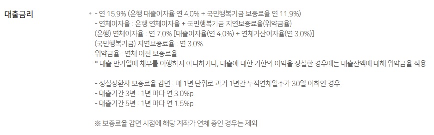 대출금리는 연 15.9%의 단일 금리가 적용되는데 이 금리중 은행에 납부하는 이자는 연간 4.0%, 국민행복기금 보증료로 납부하는 것은 연 11.9%입니다.