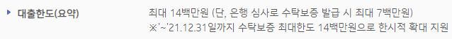 다만 2021년 12월 31일까지는 은행 위탁보증으로 대출을 신청해도 최대 한도가 1400만원까지 한시적으로 확대되니 참고하시길 바랍니다.