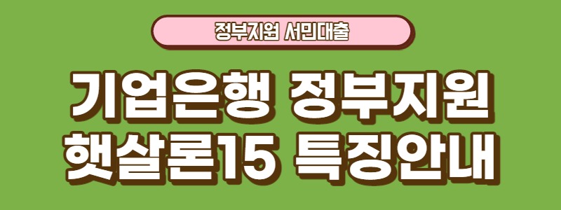 오늘은 기업은행 햇살론15의 특징안내, 신청자격, 대출한도, 상환기간, 대출금리, 필요서류 등에 대해 알려드리겠습니다.