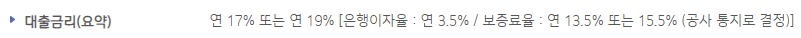 기업은행 안전망대출의 금리는 연 17% 또는 연 19%로 결정됩니다.