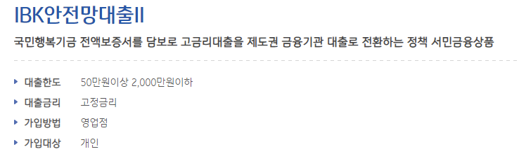 기업은행 안전망대출은 법정최고 금리 인하에 따라 상환여력이 충분함에도 불구하고 더이상 대출을 연장할 수 없는 분들을 지원하기 위해 만들어진 한시적 고금리 대환대출 상품입니다.