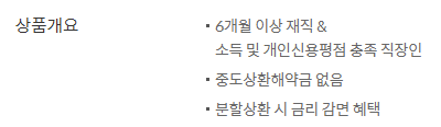 6개월 이상 재직중인 직장인이 아래의 요건중 하나를 충족하면 신청할 수 있습니다.