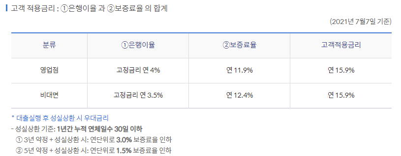 대출금리는 신한은행에서 수취하는 이자율이 연간 4.0%, 국민행복기금에서 수취하는 보증료율이 연간 11.9%이니 참고하시길 바랍니다.