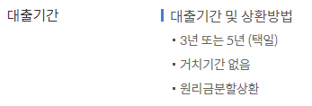 원금분할상환의 경우 1~5년까지 대출을 신청하시는 분이 대출기간을 선택할 수 있으니 참고 바랍니다.
