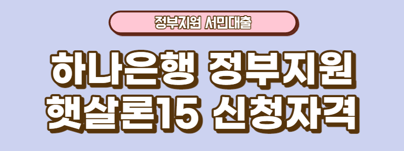 하나은행 햇살론15는 최저 신용자를 위한 정부지원 대출 상품입니다.